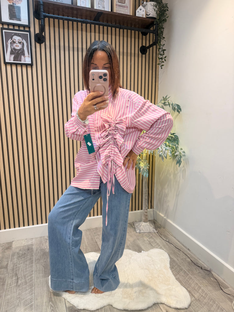 Pinstriped Rouched front shirt