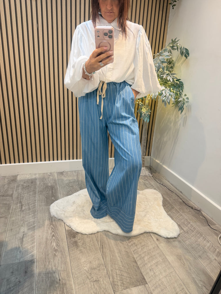 Pinstripe Denim Palazzo trousers