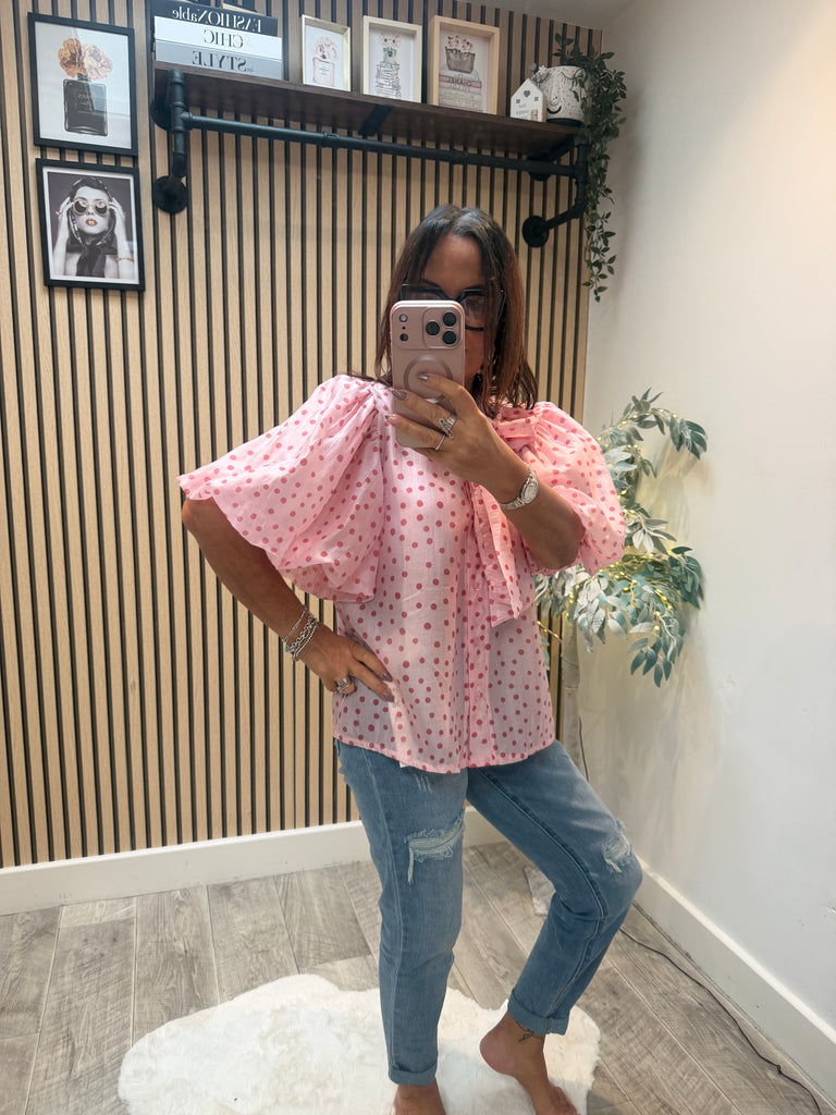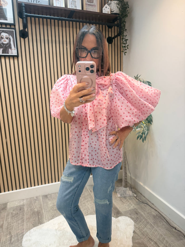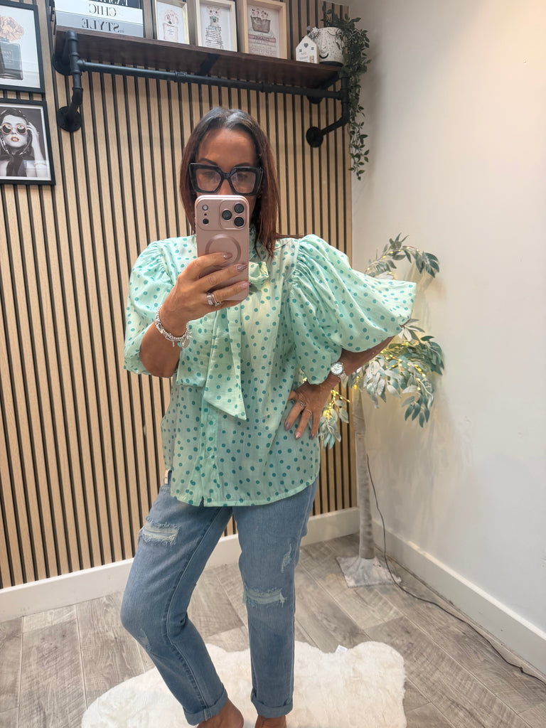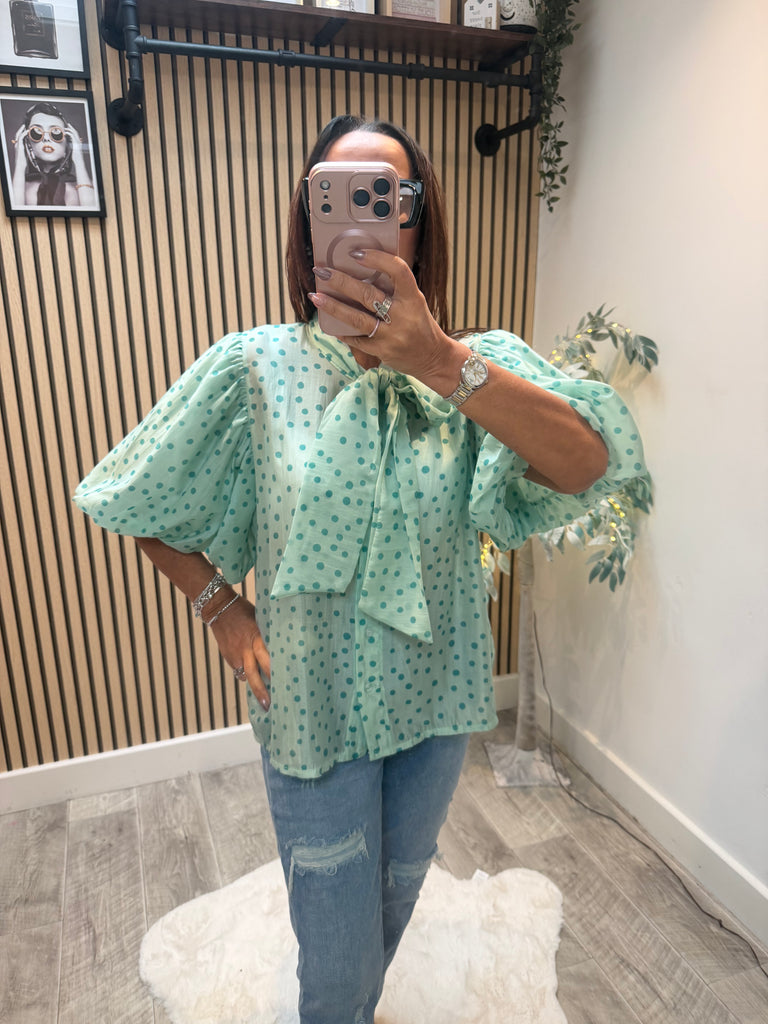 Silky sheer Polka Dot Puff sleeve blouse