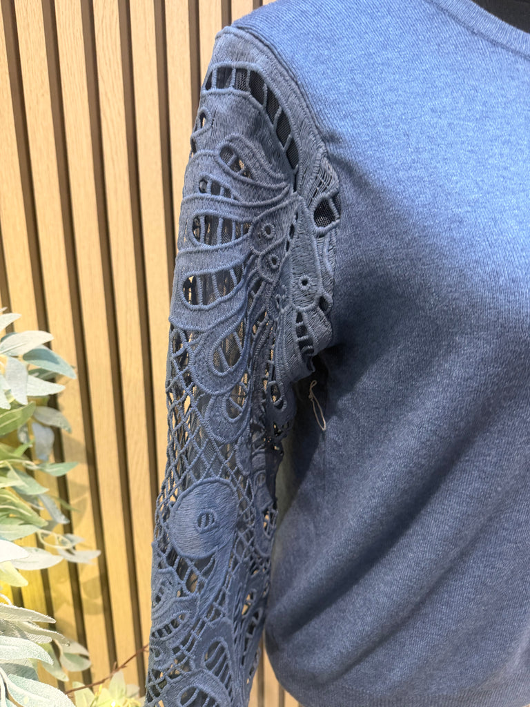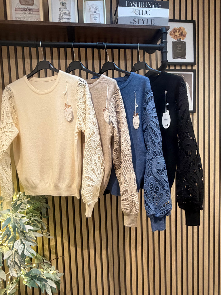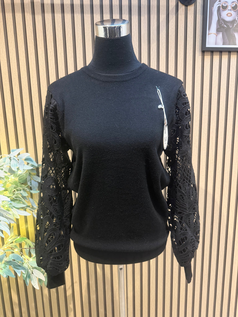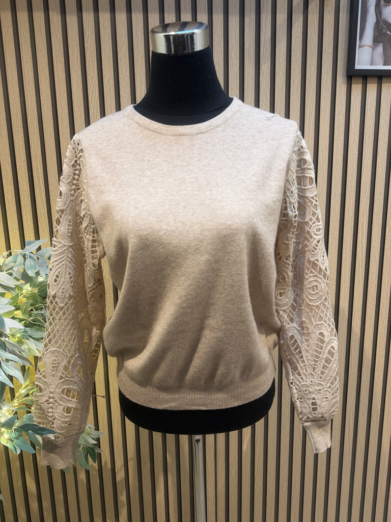 Soft knit jumper with lace sleeves